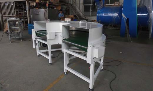 皮带转弯输送机采用专用的食品级输送带,可满足食品、制药、日用化工等行业的要求。输送平稳,物料与输送带间没有相对运动,能够避免对